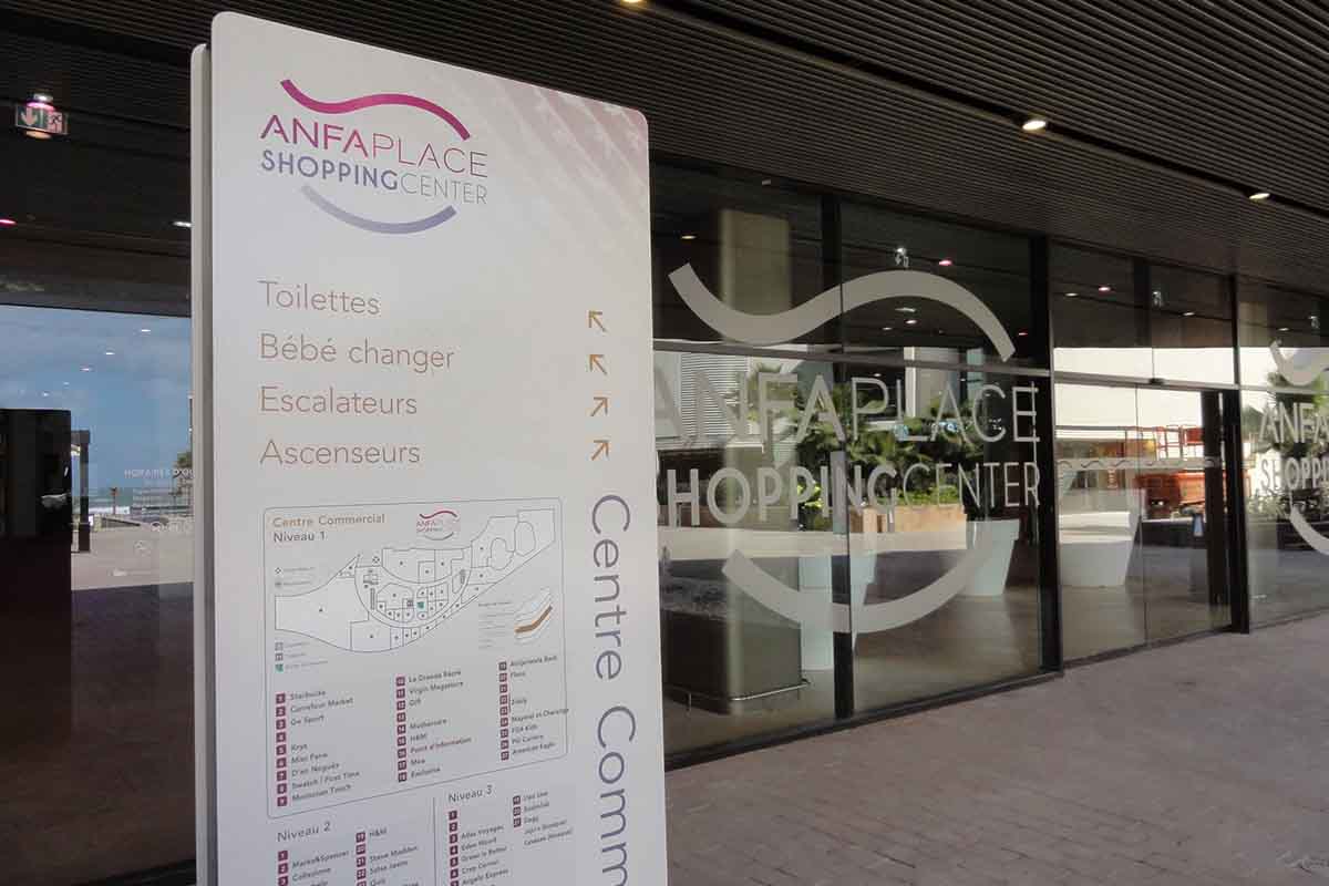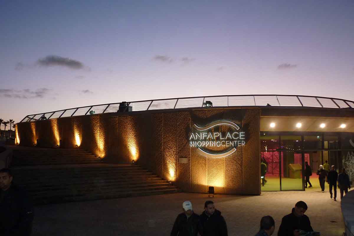 Signes també va executar la producció i el muntatge. El repte era interessant: el client a la Corunya, l’arquitecte a Londres, l’obra a Casablanca i la nostra factoria a Barcelona requereixen d’una bona logística. El resultat és impressionant, Anfaplace Shopping Center s’ha convertit en la instal·lació comercial més moderna i innovadora de Casablanca.