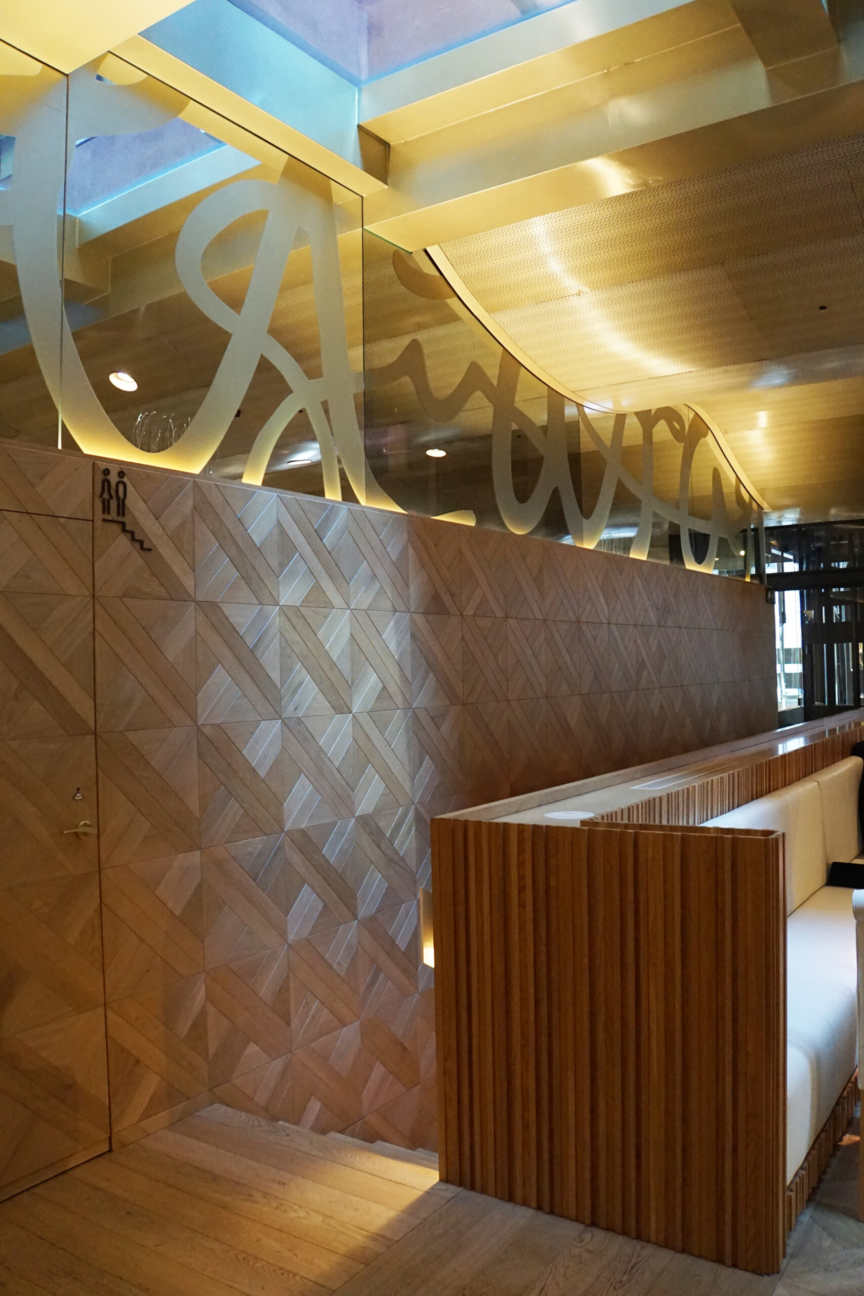 El repte d’identificar i senyalitzar un edifici tan particular i notable va consistir a integrar tots els elements de senyalització a l’interiorisme, mobiliari i paraments verticals, per poder donar la informació necessària als clients de la manera més discreta i minimalista possible. Marques, directoris, posicionals, direccionals, pictogrames i plànols s’han tractat industrialment amb els mateixos materials i acabats de l’edifici perquè sumin i quedin adaptats i integrats al potent projecte d’interiorisme existent.