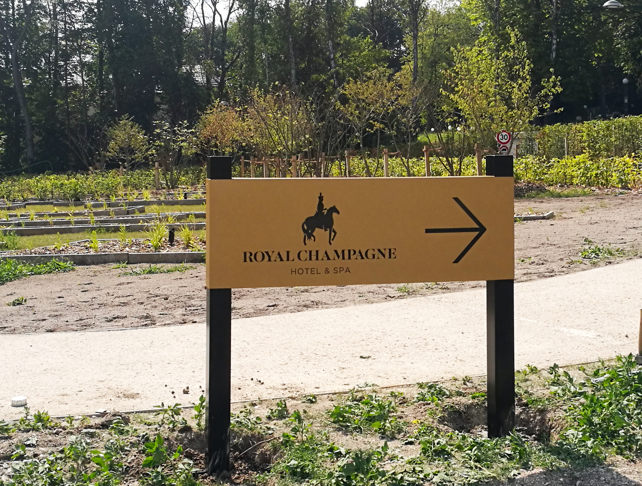 A partir de la remodelació de l’edifici i de la inauguració de Royal Champagne Hotel & Spa, Signes va fer el projecte de wayfinding, i posteriorment es va encarregar de la implantació de la senyalització de l’hotel.