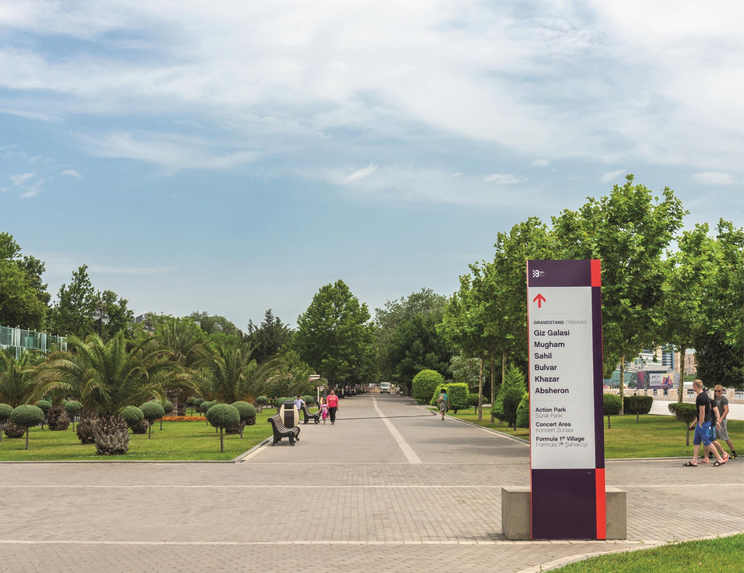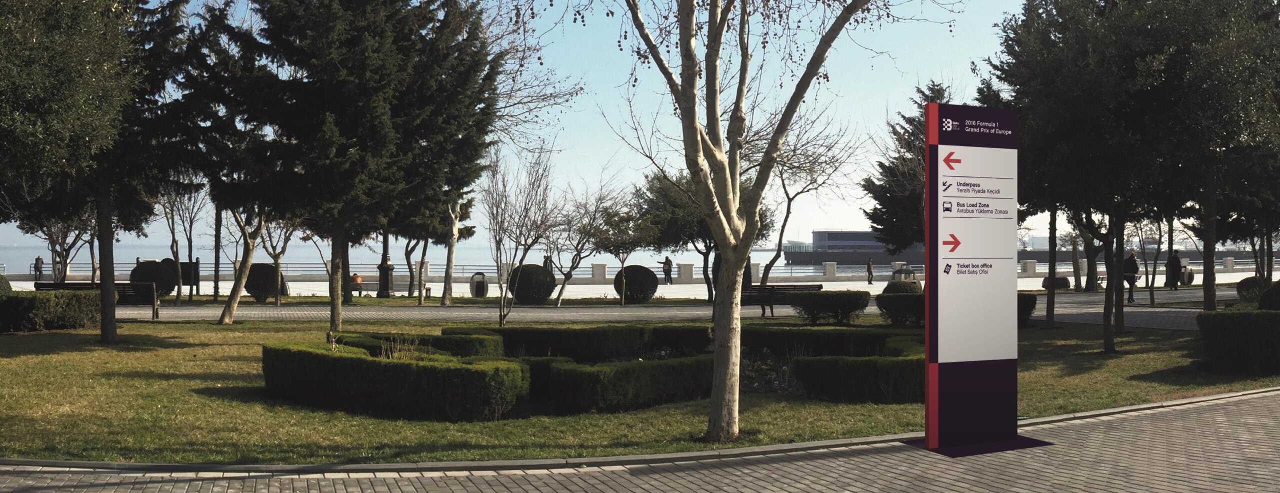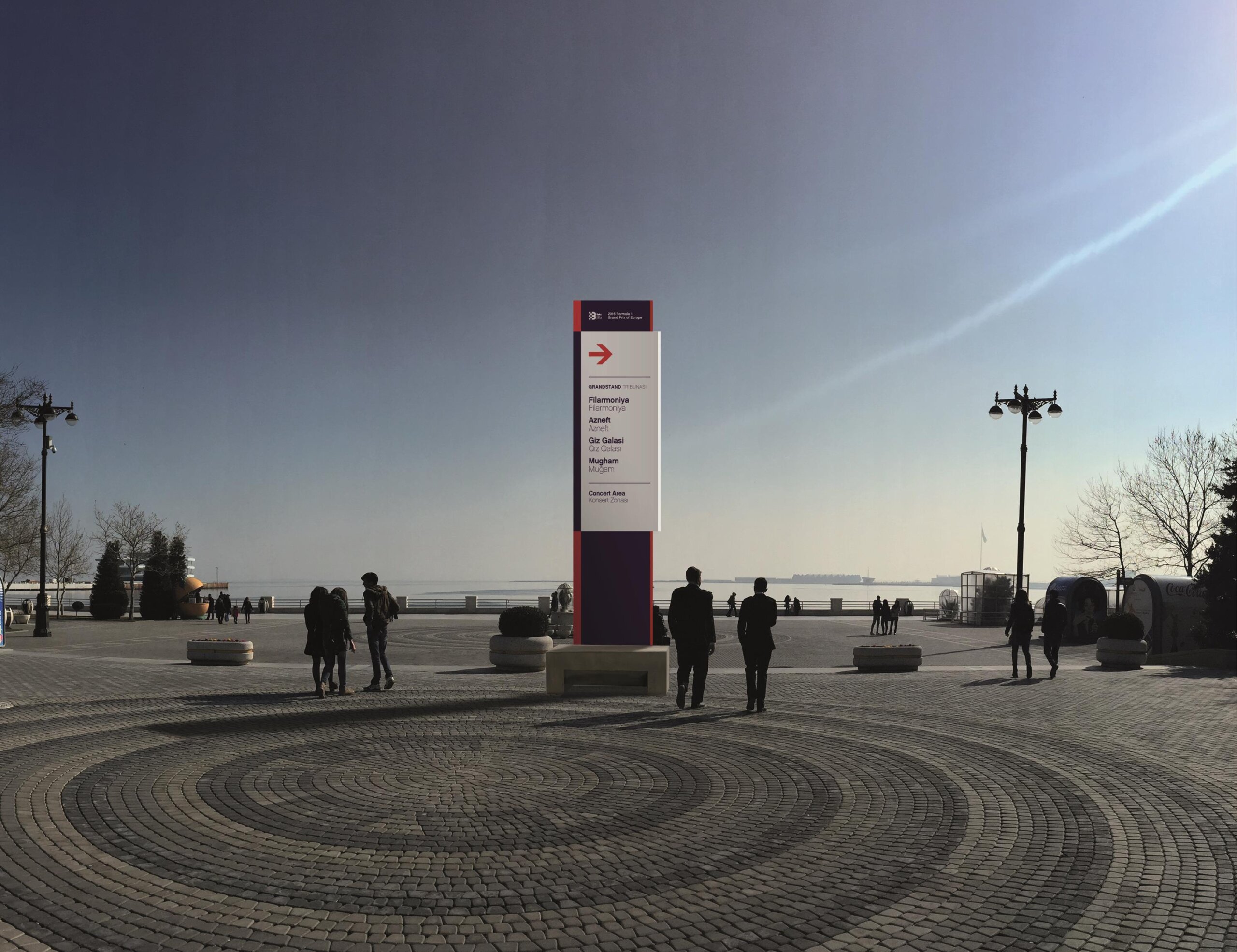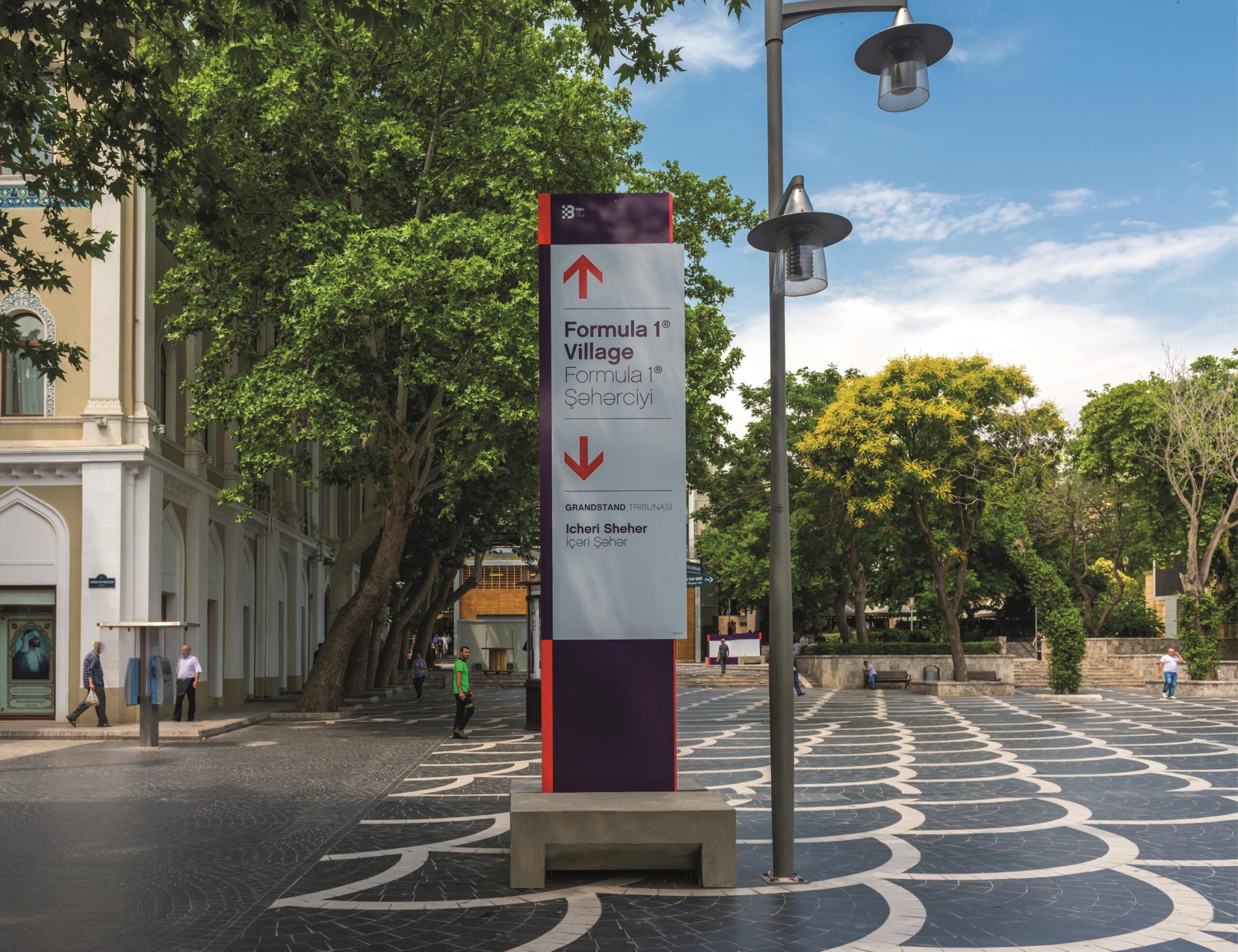 In terms of design, the constraints were not simple: the signs had to be large format to facilitate reading in large outdoor spaces and at the same time resistant to inclement weather (Baku is known as the city of wind), they had to be assembled and disassembled in a week and then stored until the following year.