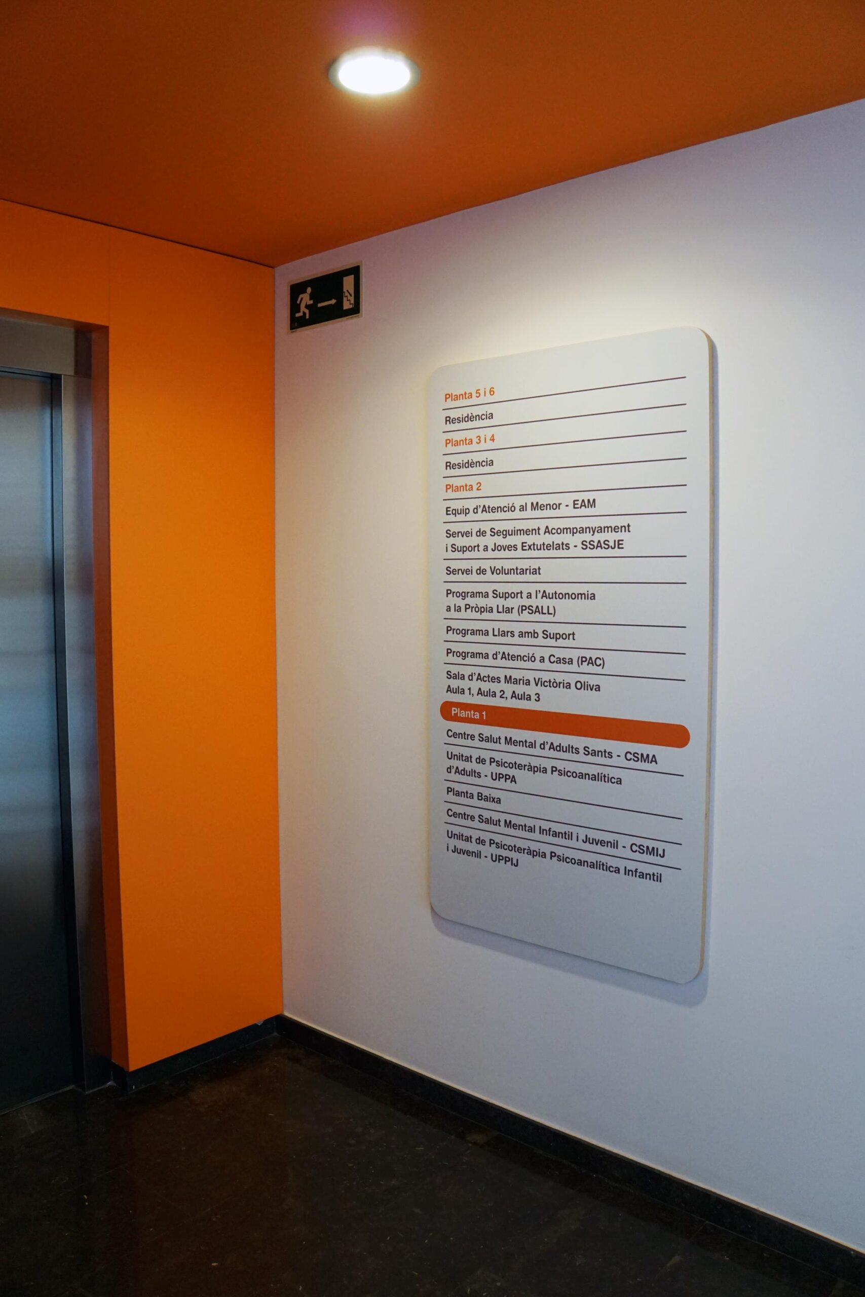 Signes made the exterior and interior signage for Cal Muns, provided expertise in Wayfinding to help the designers determine the different locations for the signs and suggested technical solutions for using the most appropriate materials and finishes to bring the designs made by Graph to life.