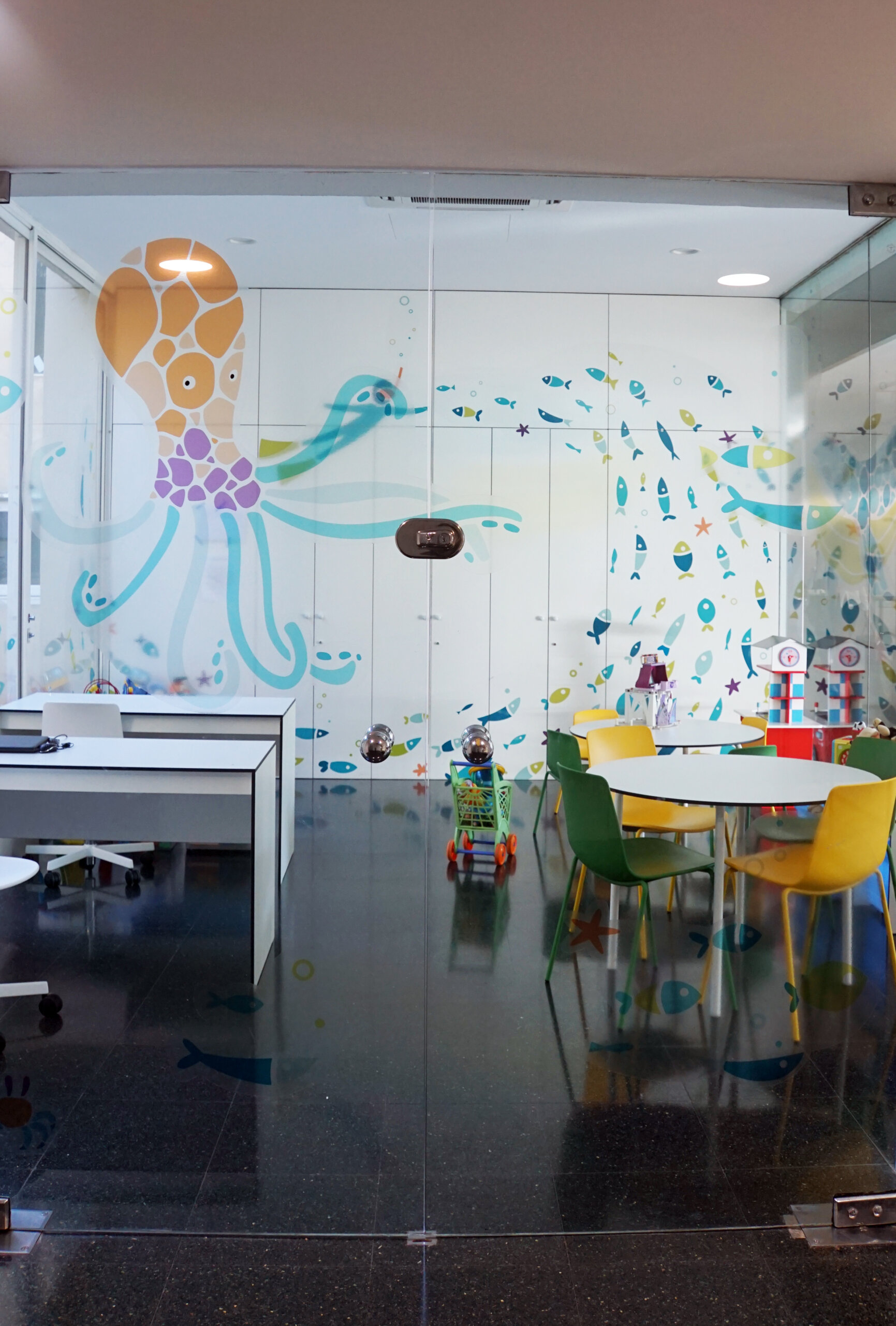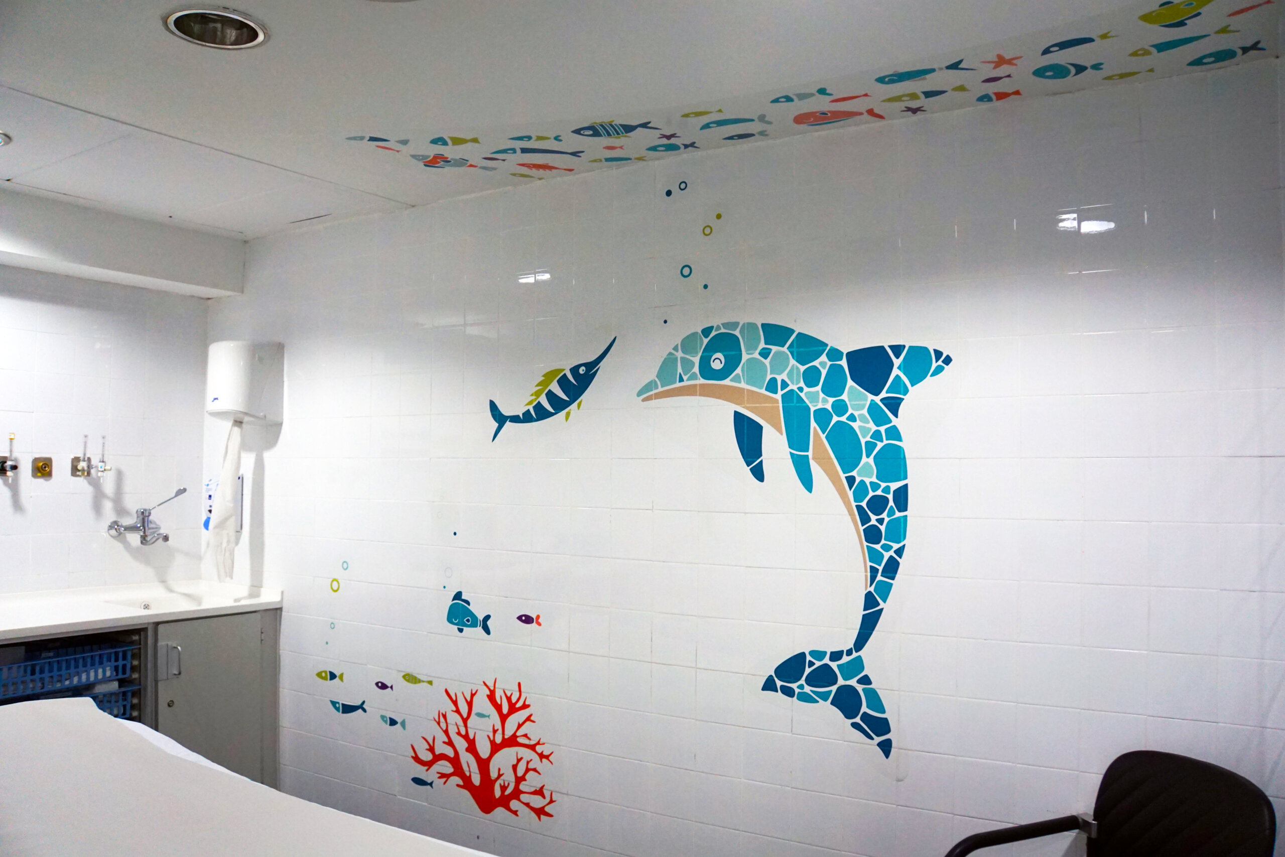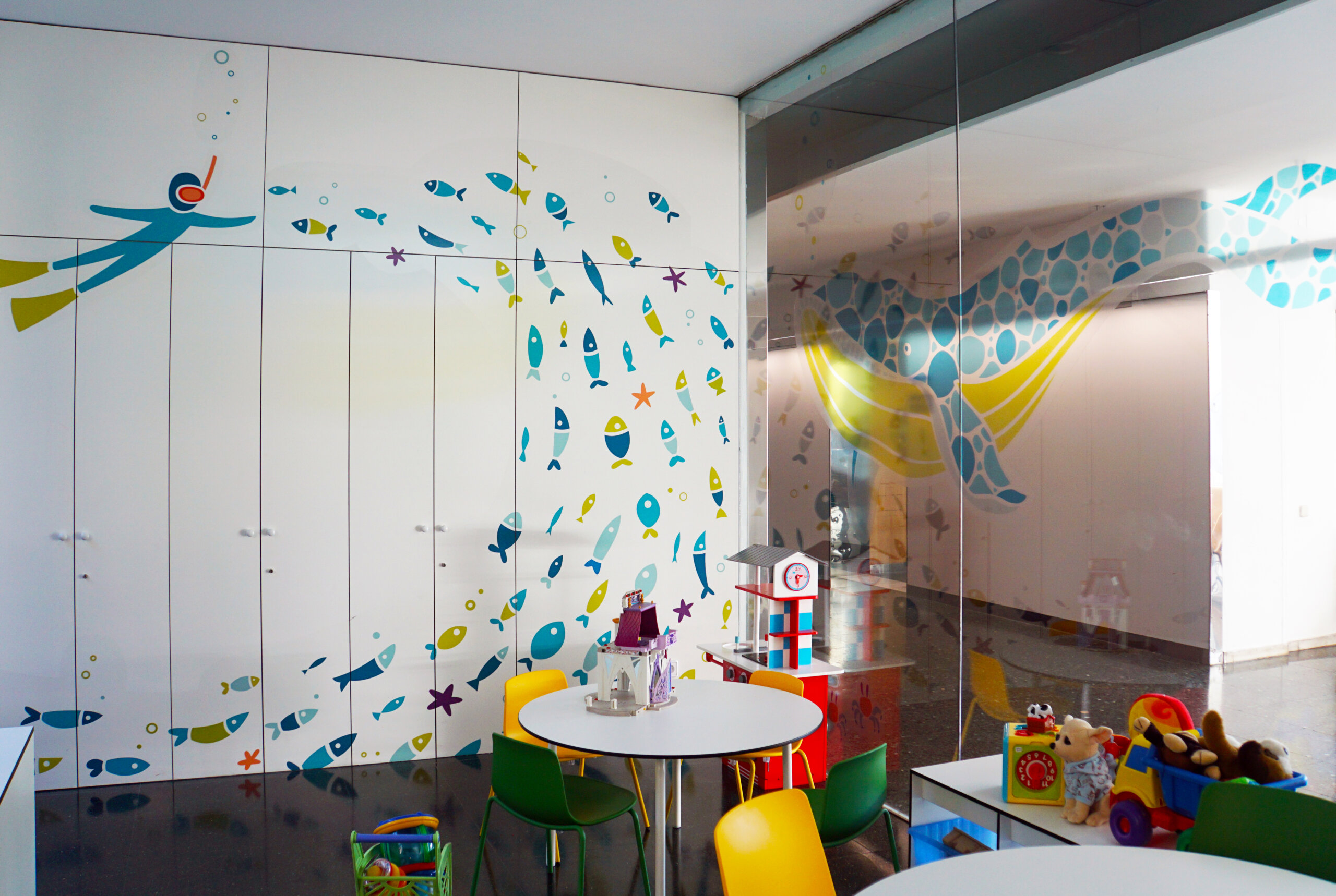 The signage was complemented with specific signage for children in the pediatric area. Friendly and nice graphics designed by Merçè Núñez Mayoral, manufactured and implemented by Signes to help the youngest users of the hospital to feel at home.
