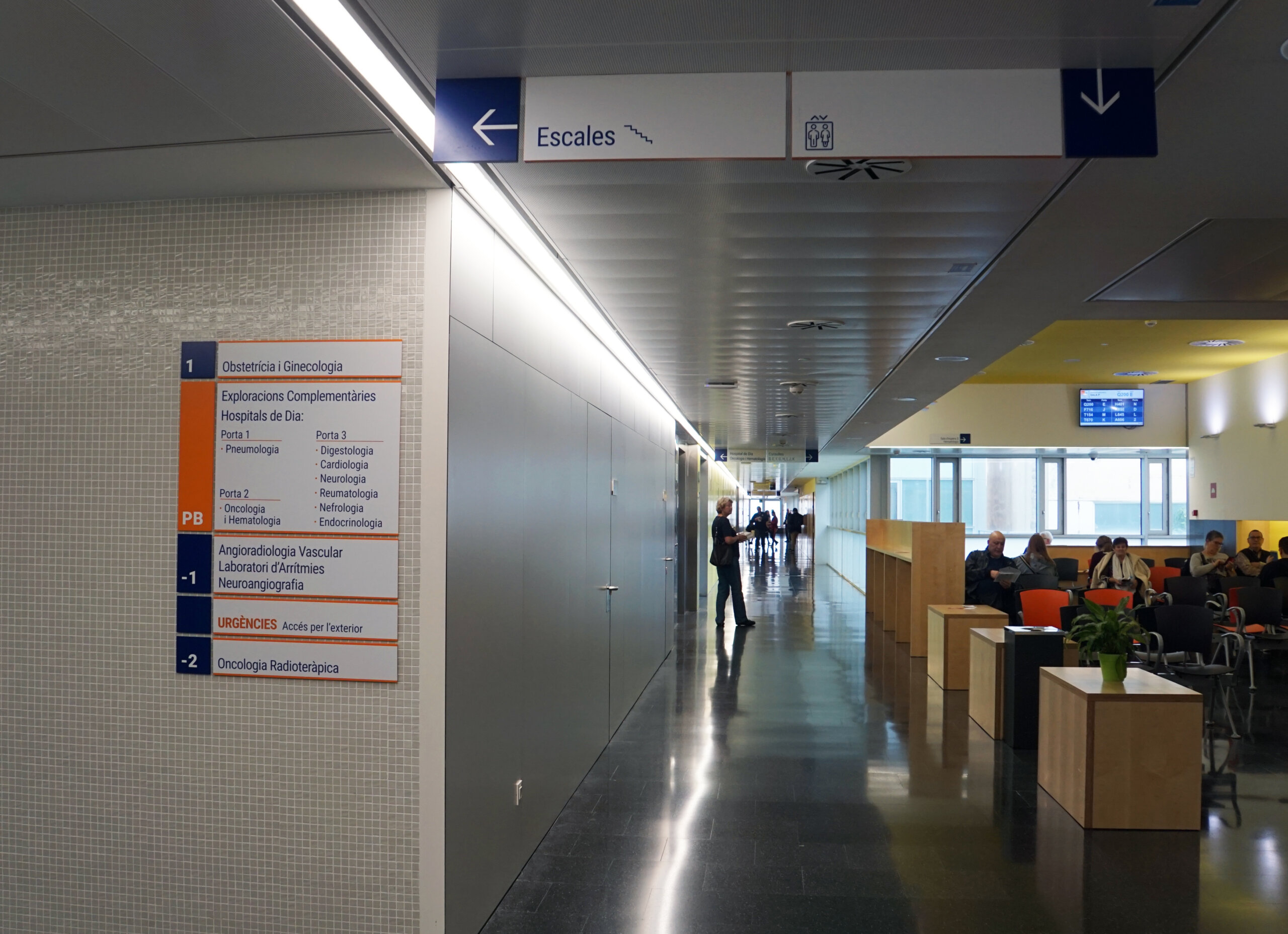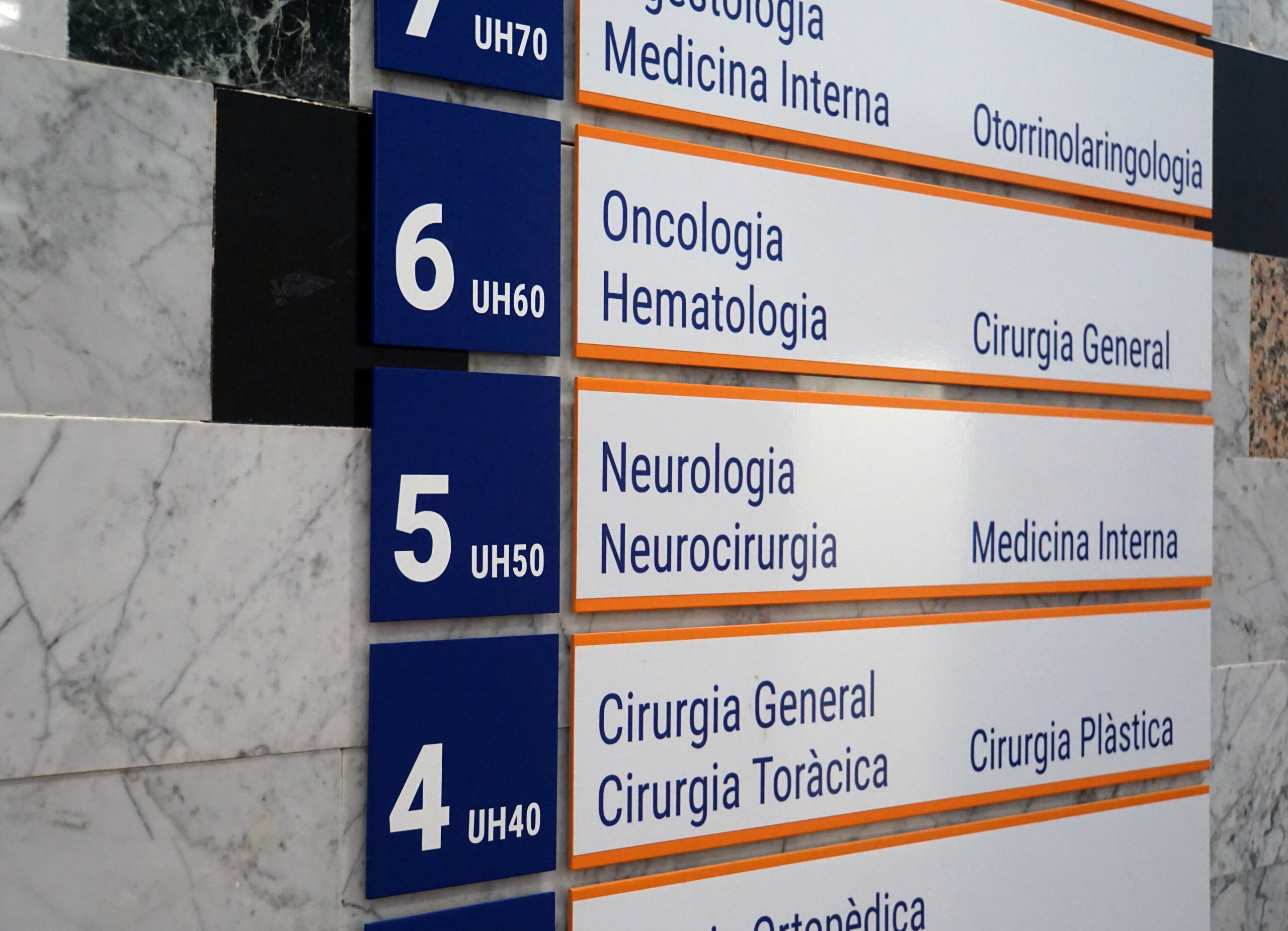 Signes’ team of wayfinding technicians developed a chromatic system to identify the different areas and accesses, designing a family of signs that facilitate circulation through the new facilities: directional totems, general and floor directories, directional signs, pictograms, positional signs, a set of signage elements that help the hospital user to recognize the spaces, facilitate the understanding of the new facilities and help locate the new hospital.