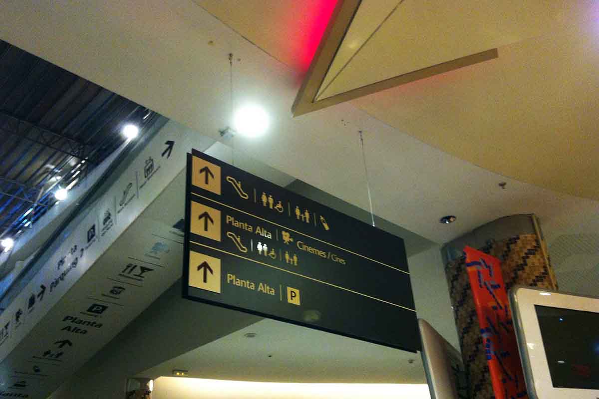 To solve the interior signage Signes manufactured totem directories with digital displays, directional signs, pictograms, banners, information panels in painted aluminum and signage in digital printing and cut vinyl.