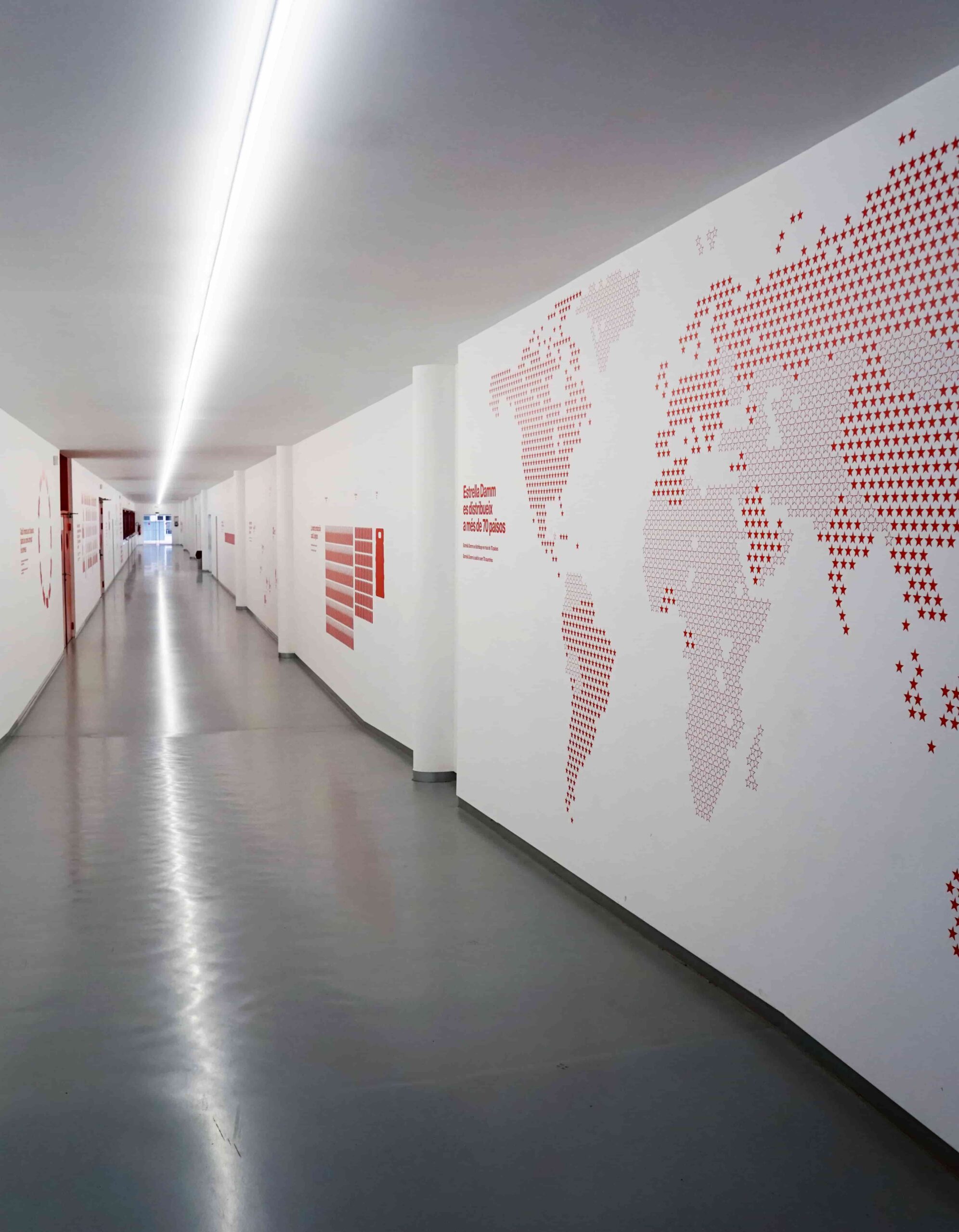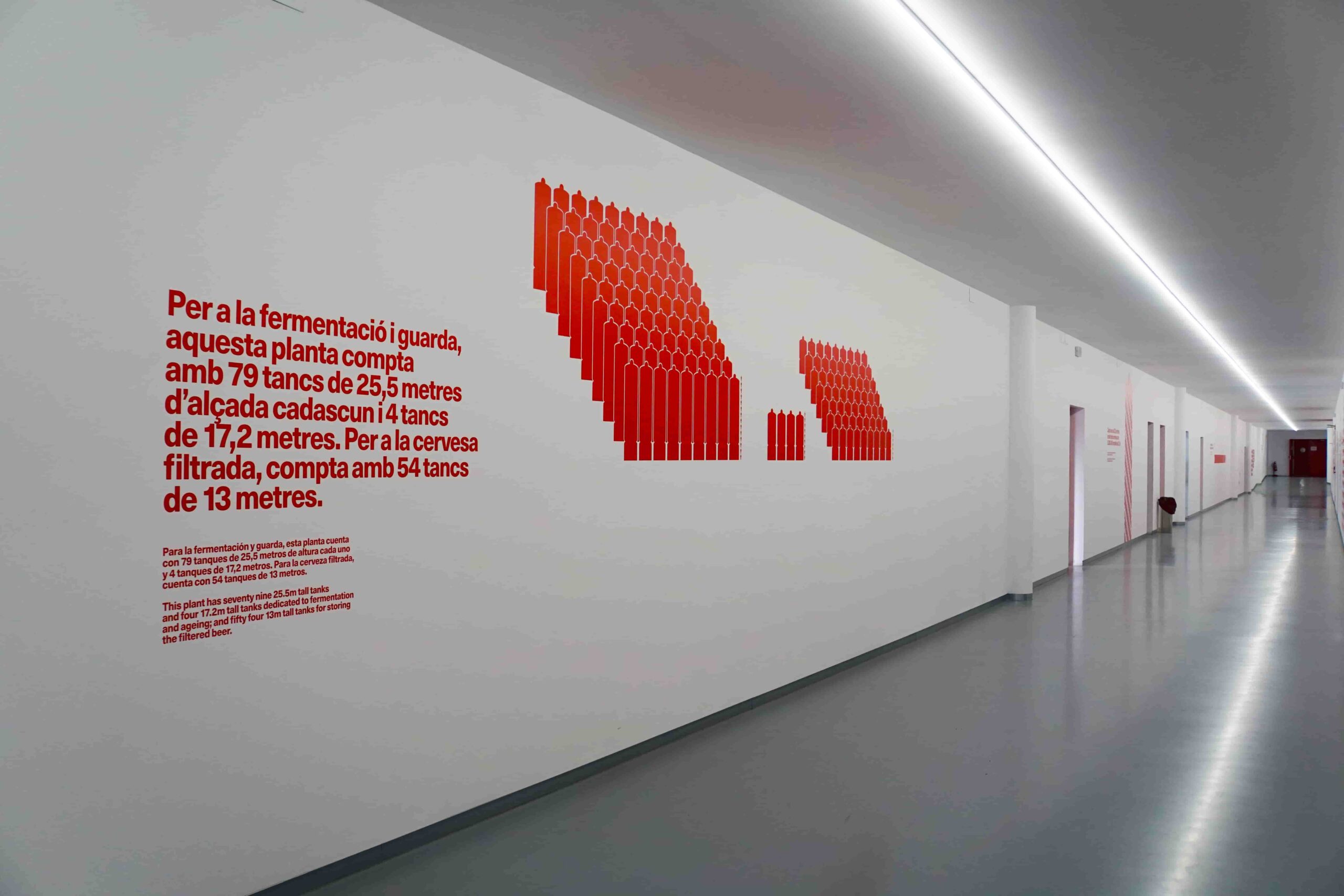 Para que los recorridos de visitas fueran más atractivos, los diseñadores Rubio *Arauna *Studio realizaron una gráfica que hace que la visita sea amena; desde la entrada en el edificio, pasando por un largo pasillo con gráficos y esquemas sobre los datos de producción, distribución y ventas, hasta la pasarela desde la cual se ve la planta de envasado, una de las vistas más impactantes del recorrido.