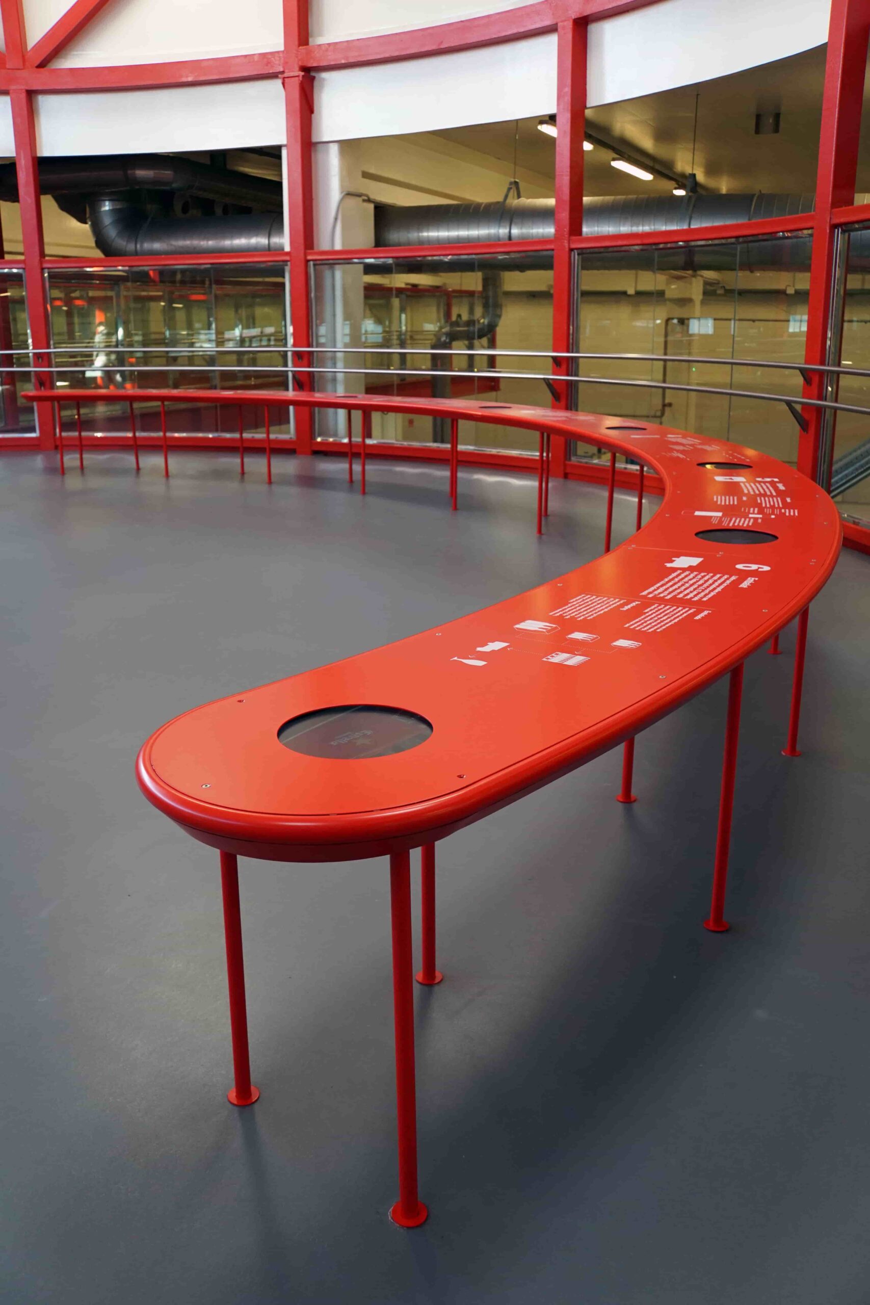 En los elementos fabricados resalta una tabla de 10 metros de diámetro, con pantallas incorporadas y explicaciones del proceso de fabricación de la cerveza.