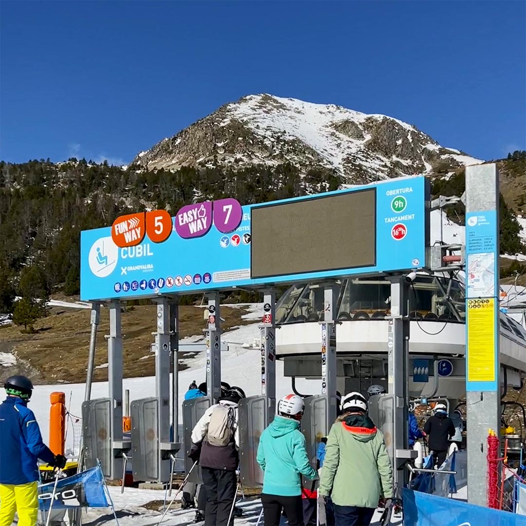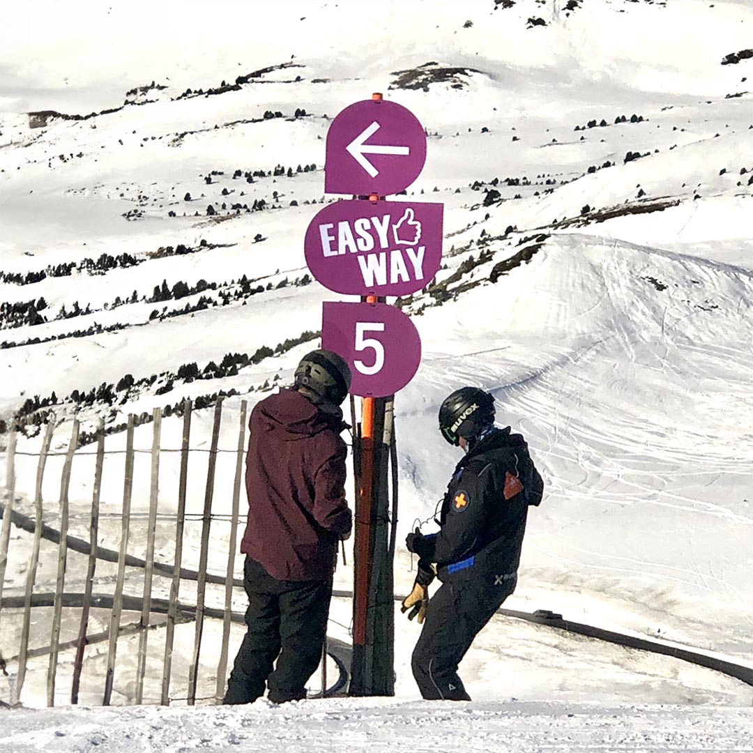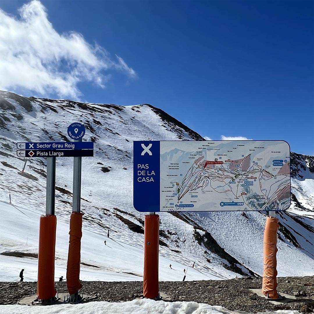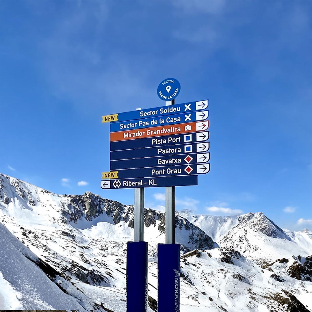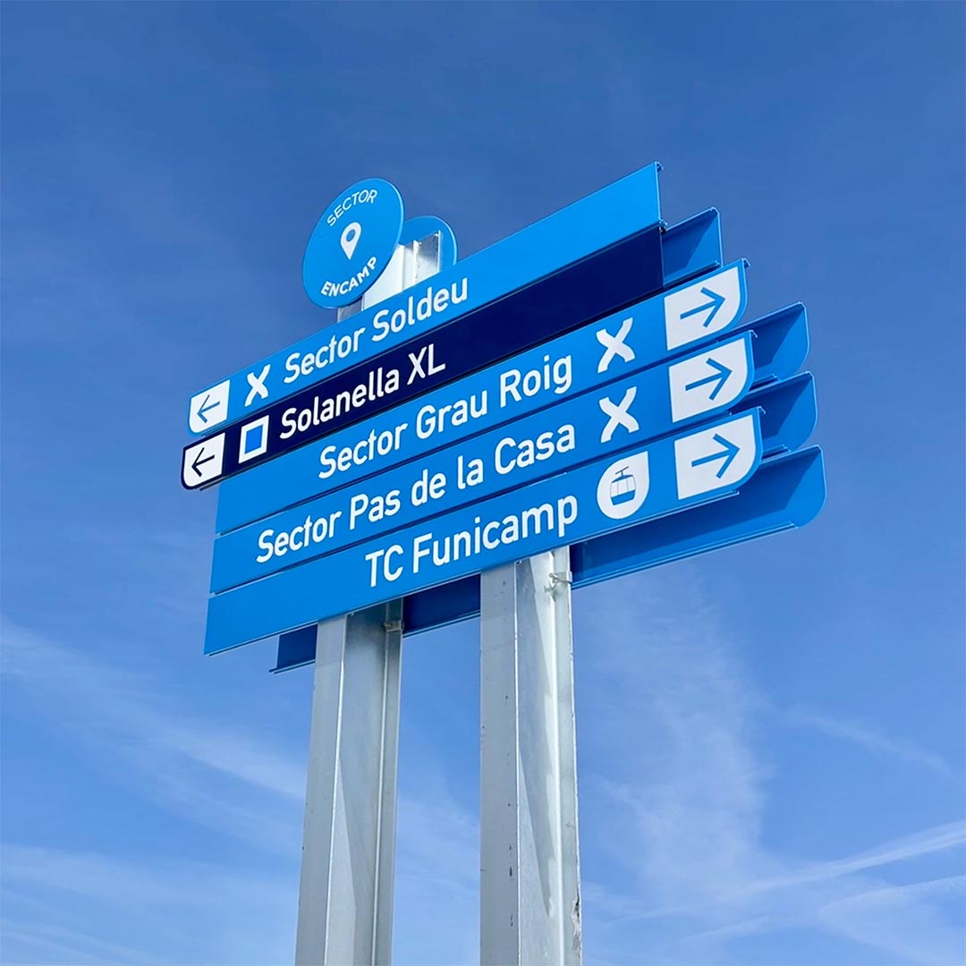 El proyecto encargado a Signes tenía el reto de diseñar un programa de señalización para las pistas que mejorara la experiencia del esquiador y que facilitara los desplazamientos de estos entre los diferentes sectores. Creando un sistema que permite el crecimiento y los cambios que año tras año se suceden en la estación, se desarrolló una familia de elementos con materiales resistentes al riguroso entorno de alta montaña mejorando los sistemas de codificación visual, el posicionamiento, el formato y la visibilidad consiguiendo distribuir los flujos de esquiadores por áreas menos concurridas y reduciendo las colas que se generaban en algunos remontes.