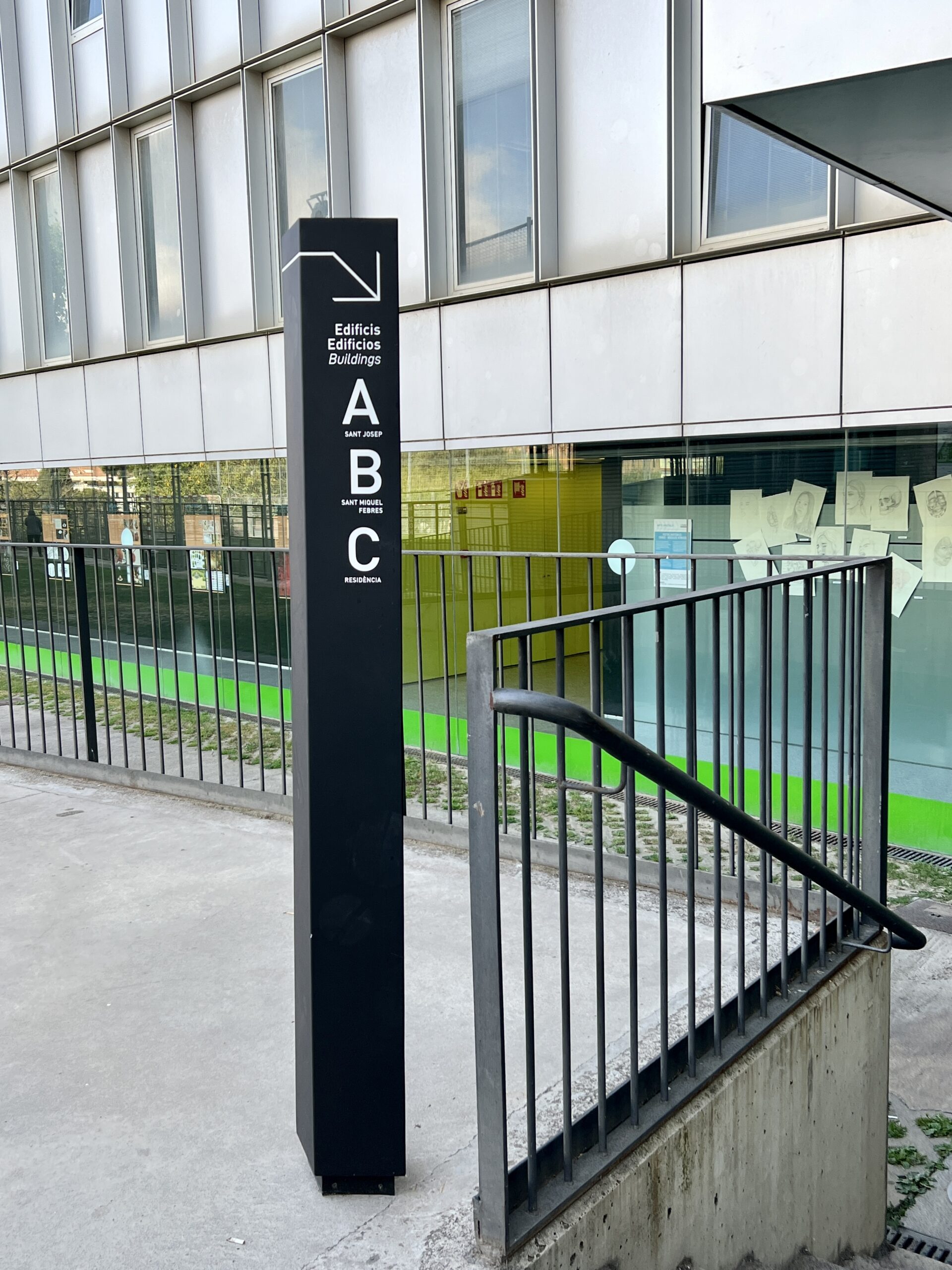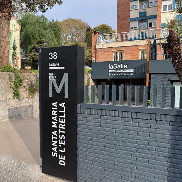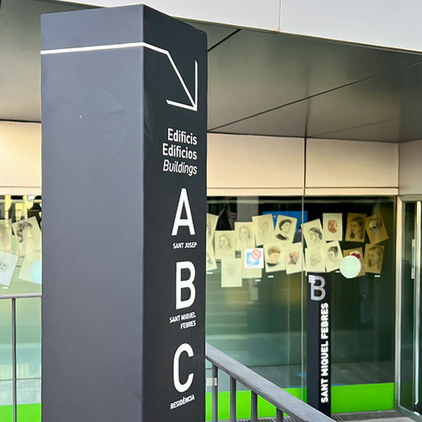 La Salle Campus Barcelona cuenta con un sistema de wayfinding y señalización exterior diseñado para ordenar y facilitar la orientación en un entorno universitario complejo y en constante actividad. El proyecto estructura los accesos y recorridos principales mediante elementos verticales de alta visibilidad, que actúan como hitos en el espacio y permiten una lectura clara del campus desde distintos puntos de llegada.